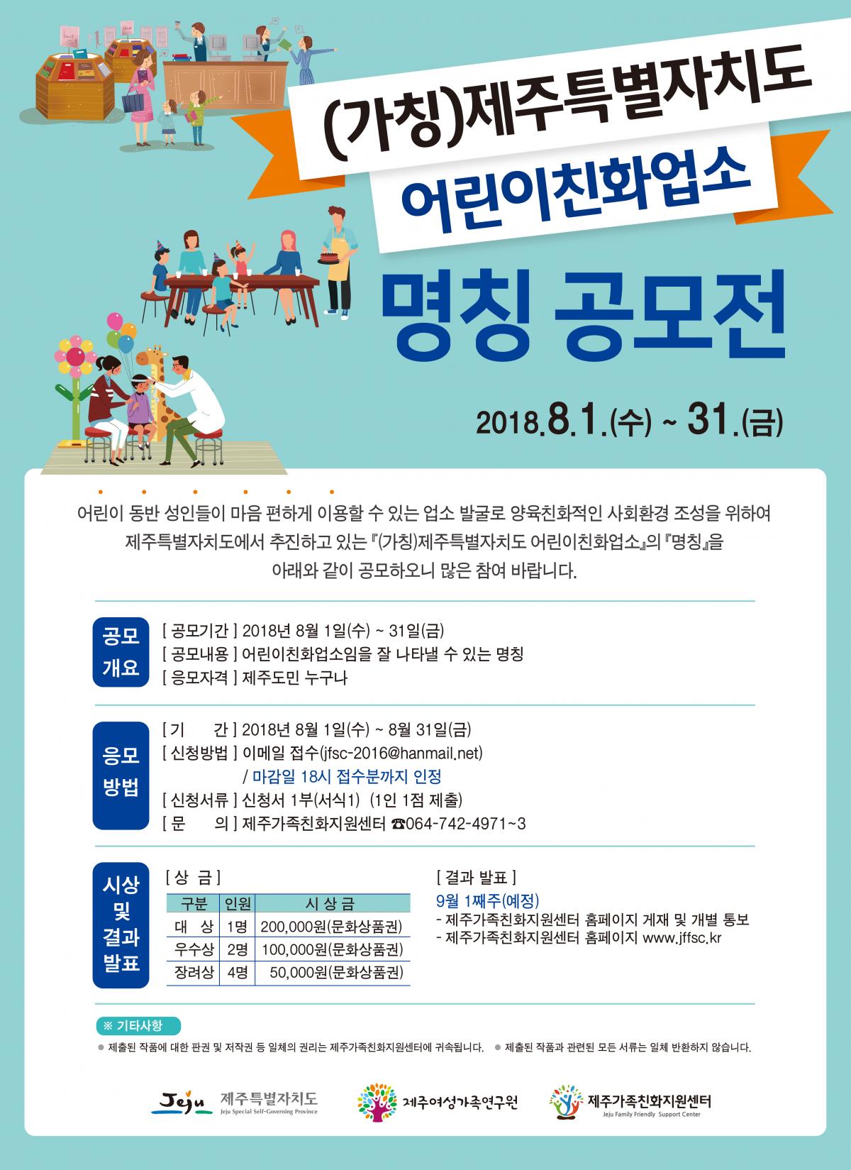 「(가칭)제주특별자치도 어린이친화업소 명칭」 공모